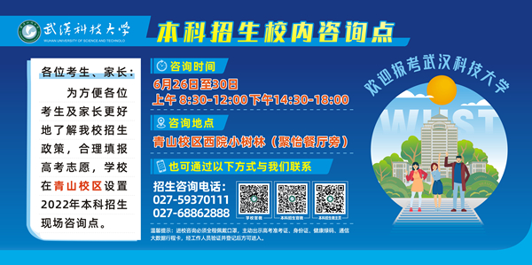 武科大网讯(记者陈孖川 李芳)今年的本科网上录取工作即将开始。前期,学校举行了形式多样的招生宣传工作。