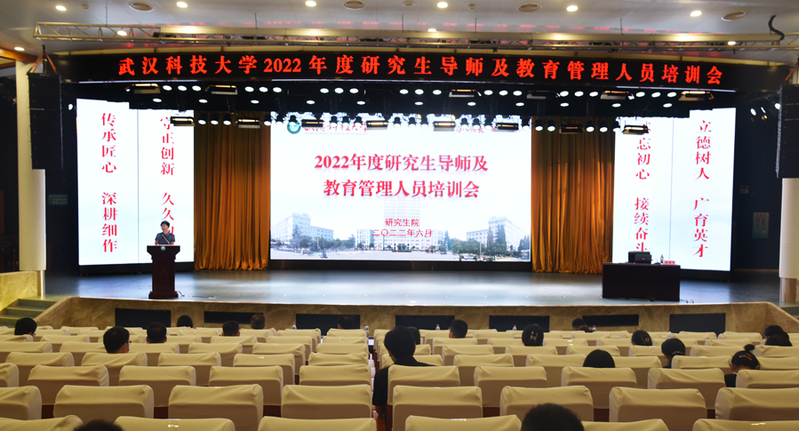 武科大网讯 为贯彻落实全国、全省研究生教育会议精神,建设高质量的研究生导师队伍和教育管理队伍,6月30日,学校在青山校区碧园会堂召开2022年度研究生导师及研究生教育管理人员培训会。副校长刘静,党委研究生工作部部长冒颖,研究生院副院长冯育强、冯涛,新增研究生指导教师,学院分管研究生工作副院长、副书记,研究生教学秘书、研究生辅导员等参加了会议。冒颖、冯育强分别主持会议。