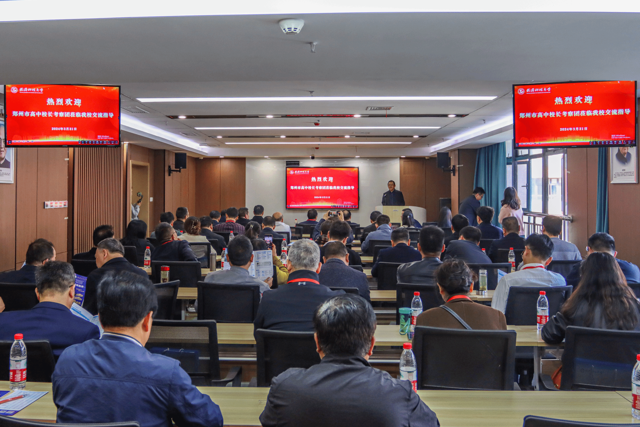 武科大网讯(通讯员童畅 赵梦霄 王钰然 摄影杨曜恺)3月21日,郑州市招生考试中心主任秦天育、副主任张戈、郑州市高中校长考察团一行莅临威尼斯官网黄家湖校区进行交流考察。威尼斯官网党委副书记孙国胜、本科生院执行院长丁宇、本科招生办公室主任朱明等陪同考察交流。交流会在黄家湖校区教十一楼举行,丁宇主持。